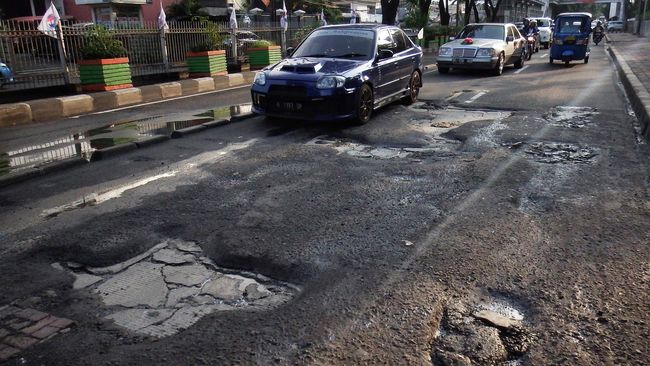 Lubang di jalanan membahayakan pengguna jalan, terutama sepeda motor yang mengandalkan keseimbangan. Bukan hanya itu, lubang juga berpotensi merusak suspensi kendaraan dan bisa berefek buruk buat tubuh. (fea)
