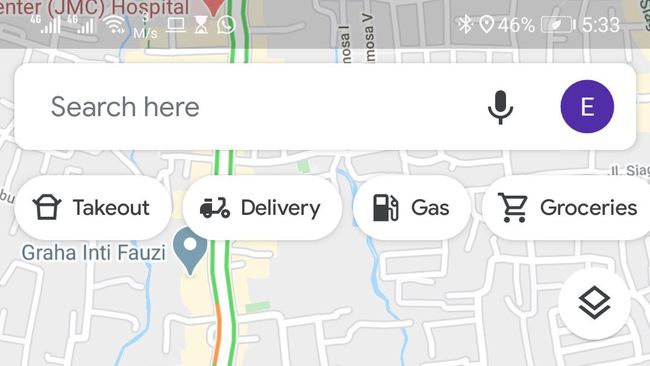 Pengguna bisa menemukan jalan pintas pilihan delivery dan takeout pada bagian atas peta, tepat di bawah kolom pencarian. Aplikasi akan mempercepat pengguna memesan makanan.